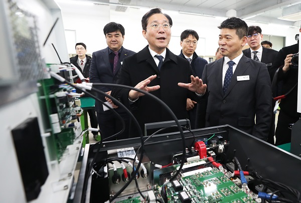 성윤모 산업통상자원부 장관은 13일 수소경제 활성화 로드맵 발표 1년을 맞아 경기 용인시 소재의 신재생에너지 연계 수전해(물 전기분해) 시스템 제조 중소기업인 ㈜지필로스를 방문힌 자리에서 “2019년은 명실상부한 수소경제 원년으로 초기 시장과 인프라가 본격적으로 형성되고 산업의 기틀이 마련되는 등 가시적인 성과를 도출했다”고 평가했다.