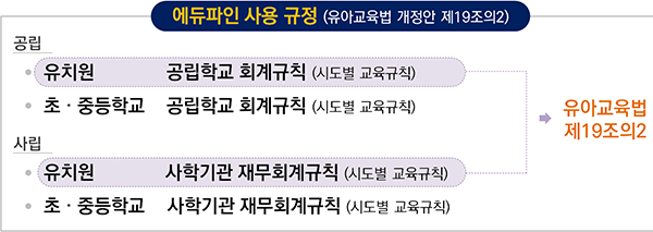 특히 모든 유치원의 에듀파인 사용을 법률로 규정하면서 사립유치원의 에듀파인 도입에 대한 명확한 근거를 마련했다.