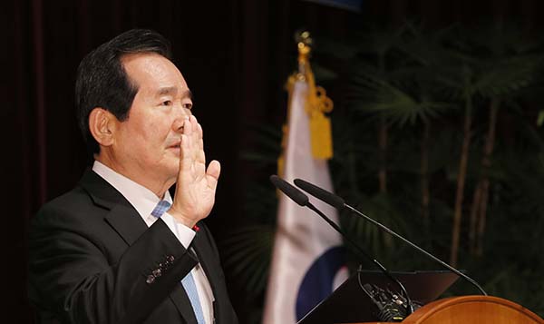 저부터 대한민국에 대한 마지막 봉사라는 각오로 희생하고 헌신하겠습니다. 총리로서 헌법과 법률이 부여한 책임을 다하는데 모든 힘을 쏟겠습니다. 공직자 여러분과 함께 그런 보람된 책무를 수행할 수 있게 된 것은 저의 영광이고 행운입니다.