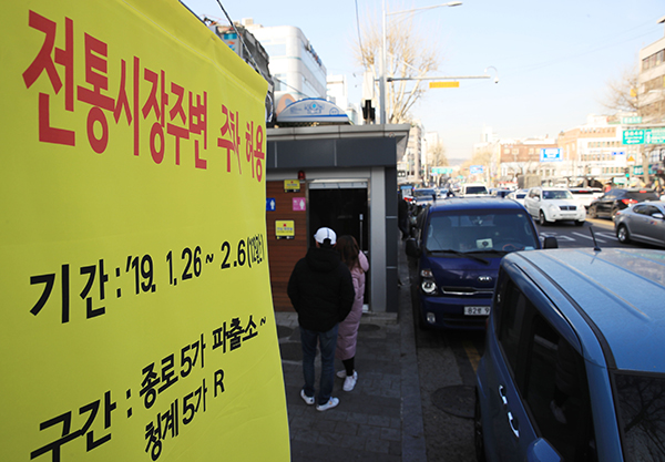 설 명절을 맞아 전국 548개 전통시장 주변 도로에 주차가 허용된다. 사진은 지난해 1월 설 명절 기간 전후로 주차가 허용되었던 서울 광장시장 앞 주차 구역. (사진=(c) 연합뉴스)주차 허용 대상 전통시장은 연중 상시주차가 허용되는 전통시장 167개소와 시장상인회 의견을 수렴한 후 지방자치단체와 경찰청이 도로여건 등을 고려해 한시적으로 선정한 381개소다.