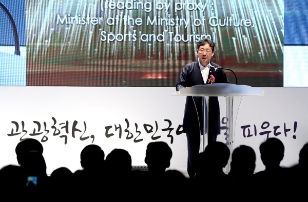 28일 부산, 강릉, 전주, 목포, 안동 등 총 5곳이 방한 도시관광의 선도모델 육성을 위한 ‘관광거점도시’로 선정됐다. 사진은 박양우 문화체육관광부 장관이 지난해 9월 27일 서울 중구 웨스틴조선호텔 그랜드볼룸에서 열린 제46회 관광의 날 기념식에 참석해 대통령 축사를 대독하고 있다.우리나라는 지난해 외국인 관광객 1750만 명을 유치해 역대 최고치를 달성했지만, 대부분의 외국인 관광객이 서울에 집중되고 있다. 방한 관광시장이 계속 성장하기 위해서는 지역의 새로운 관광거점을 육성해야 한다.