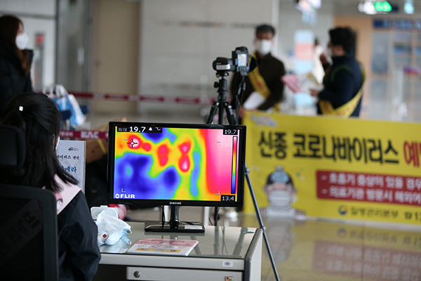 30일 오후 경북 포항시 남구 동해면 포항공항에서 포항시남구보건소와 포항공항 관계자가 신종 코로나바이러스 감염증 확산 우려에 따라 열화상카메라를 설치한 뒤 제주발 비행기에서 내린 승객을 관찰하고 있다. (사진=(c) 연합뉴스,)◆ 신종 코로나바이러스감염증 대응 상황 및 범부처 지원대책