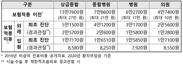 이렇게되면 최초 진단 시에는 진단(일반)초음파 수가의 본인부담 부분(30~60%)인 2만 5600원에서 5만1500원을 부담하게 되어 환자부담이 기존 대비 약 2분의 1 수준으로 경감된다.