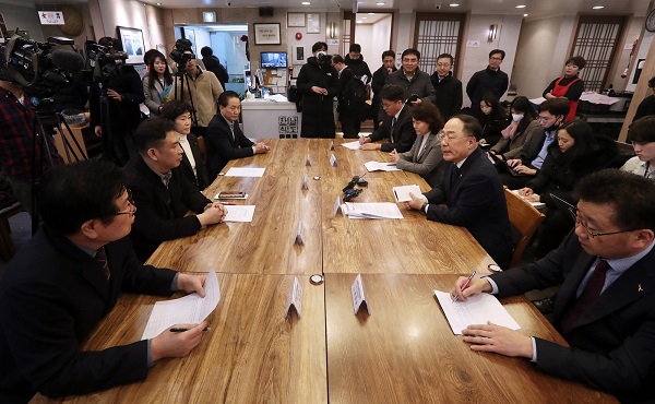 홍남기 경제부총리 겸 기획재정부 장관이 지난 3일 오후 서울 중구에서 신종 코로나바이러스 관련해 소상공인들과 간담회를 하고 있다. (사진=(c) 연합뉴스)정부는 우선 중소·중견기업에 총 1조9000억원의 자금을 신규로 공급한다. 지원대상은 신종 코로나로 피해를 보거나 피해가 예상되는 기업으로 업종 제한없이 지원 받을 수 있다. 매출이 급격히 감소하거나 중국기업과 거래 기업으로 영업에 차질이 발생하는 등 피해 사실을 바탕으로 각 정책금융기관이 지원 대상 여부를 심사한다.